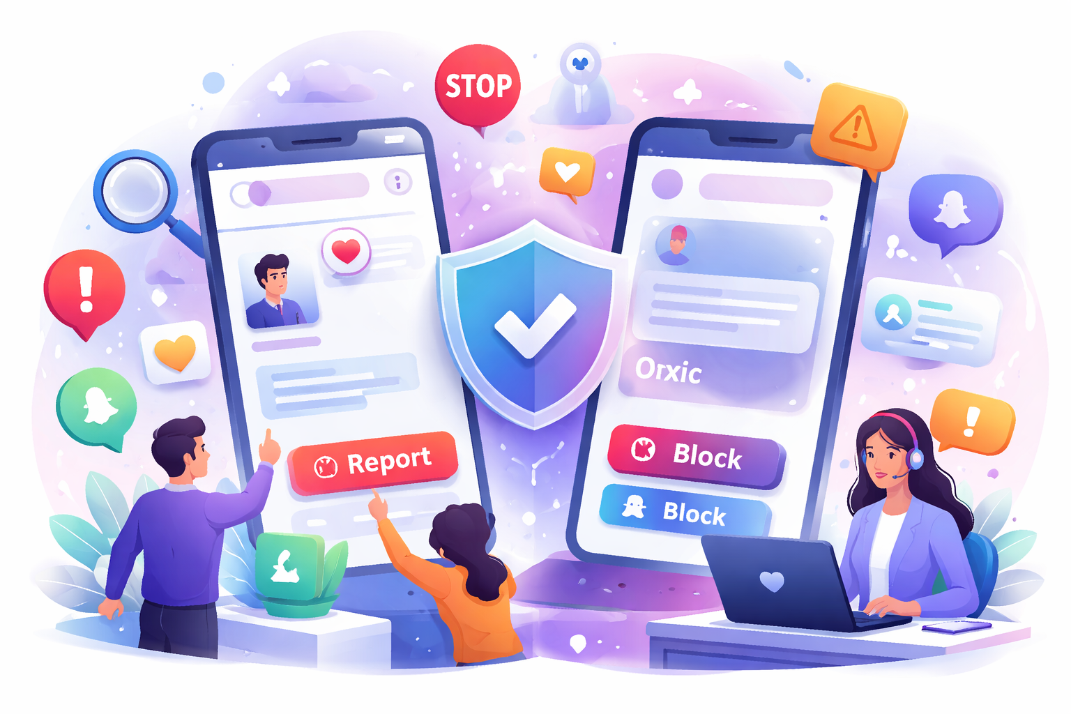 A report button and a block button are essential. But they are reactive. By the time a user reports, the harm already happened: